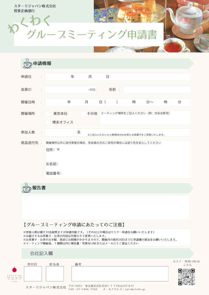 この度、スターリジャパンではグループのミーティングをバックアップする制度をスタートいたします。